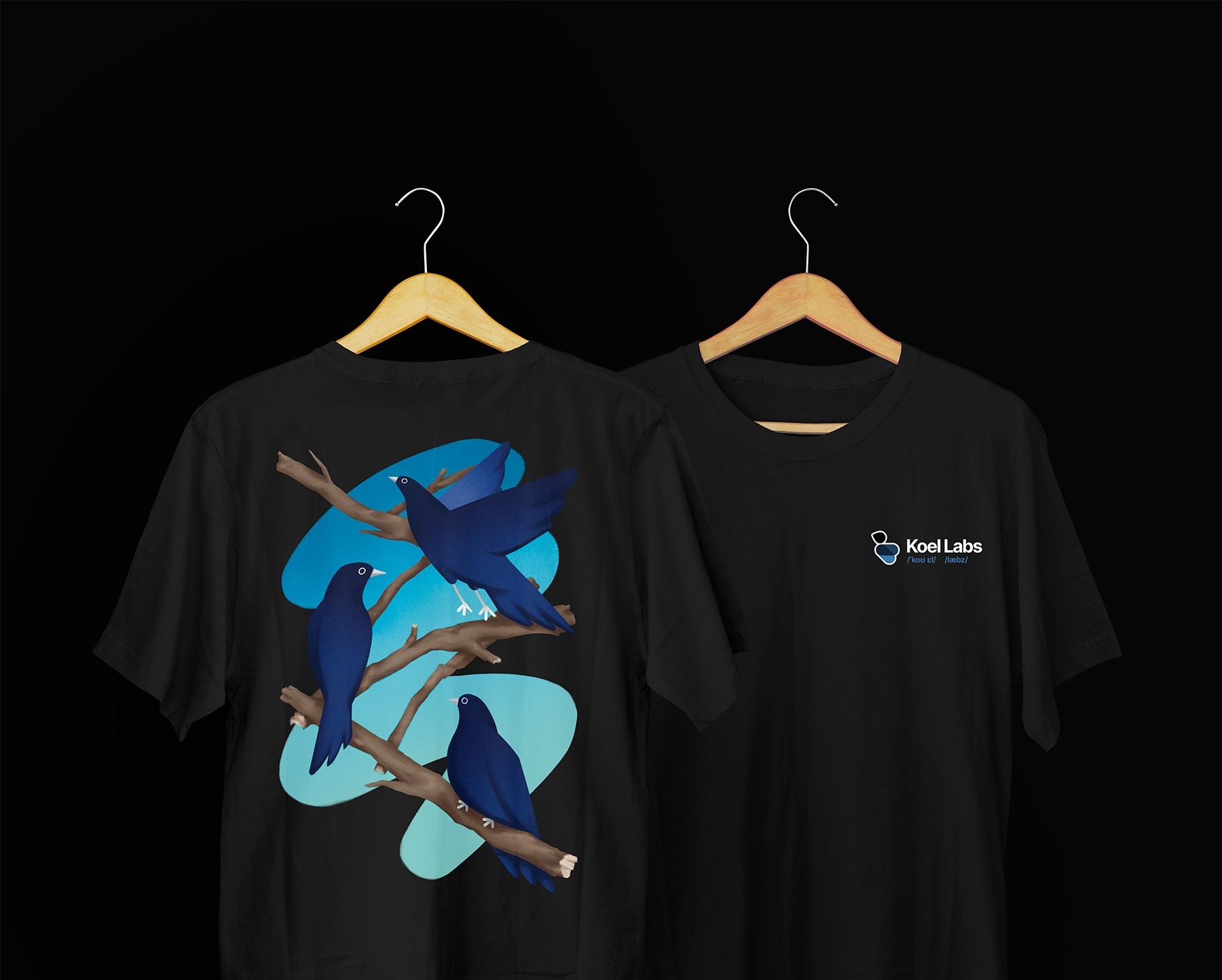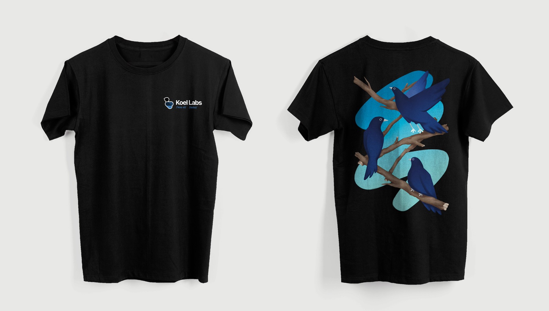 Embroidered front and graphic back style T-shirt designs for Koel Labs.